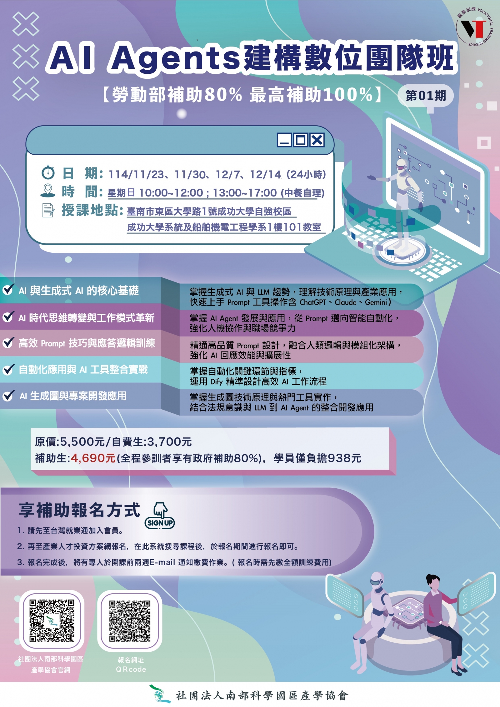 這門課帶你一步步實作生成式 AI、工作自動化與團隊協作,整合 ChatGPT、laude、Gemini、Dify 等主流工具,打造真正懂思考、能行動的「智慧數位團隊」!