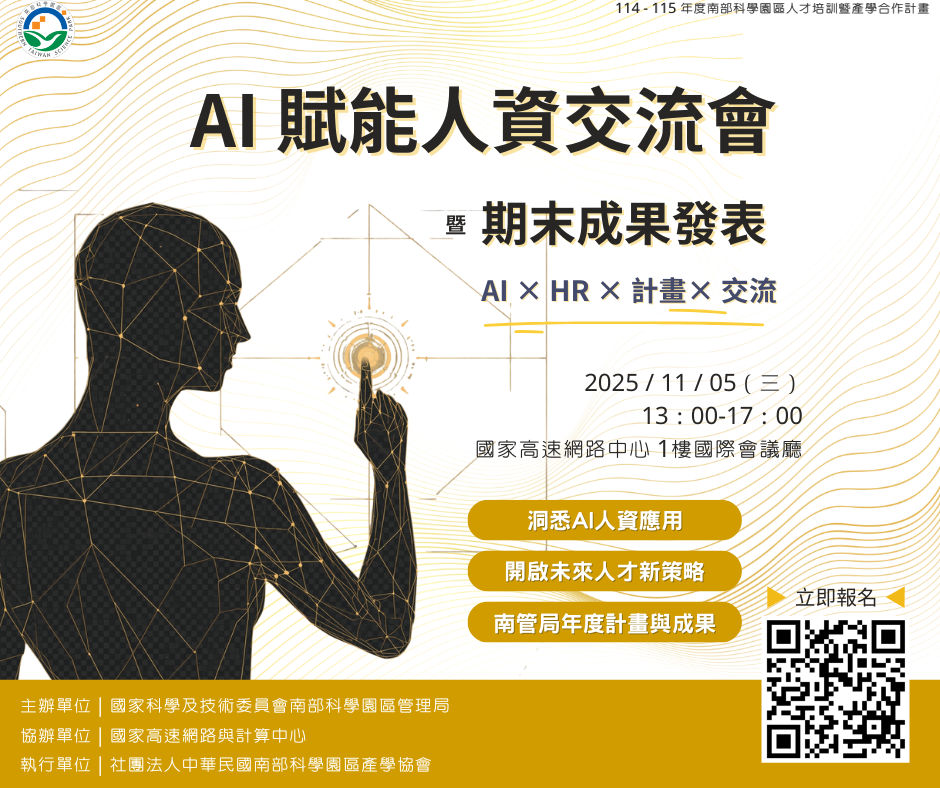本次交流會參加即獲取 AI 人資新知、專家心法與南科資源,全面升級職能。