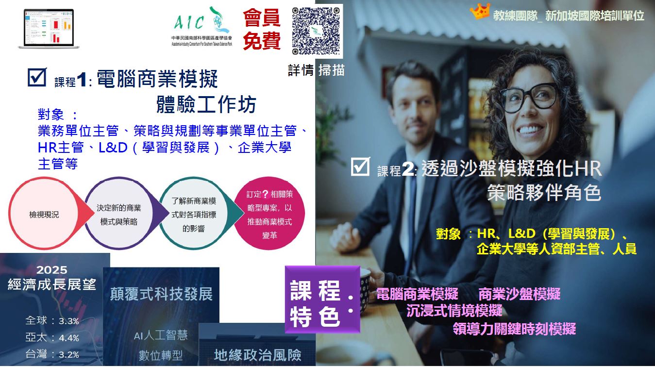 學員登入 註冊會員 忘記密碼 活動訊息 活動訊息 協會活動 會員活動 策略聯盟 成功大學產學創新總中心 成大工程科技推展中心 台灣科學工業園區科學工業同業公會 中華人事主管協會 活動訊息 首頁>活動訊息>活動訊息>協會活動 活動名稱沈浸式情境模擬課程_團體會員免費專案 日期 轉寄好友 友善列印 分享 訂閱產學電子報 我要報名 活動名稱 沈浸式情境模擬課程_團體會員免費專案 活動內容 活動時間與地點 時間 我要報名 上一頁