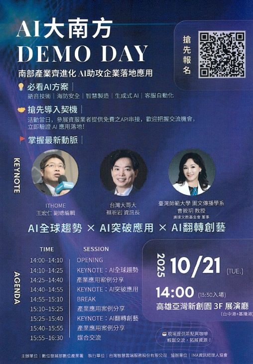 【活動轉知】10/21(二)14:00@高雄-AI大南方DEMO DAY
