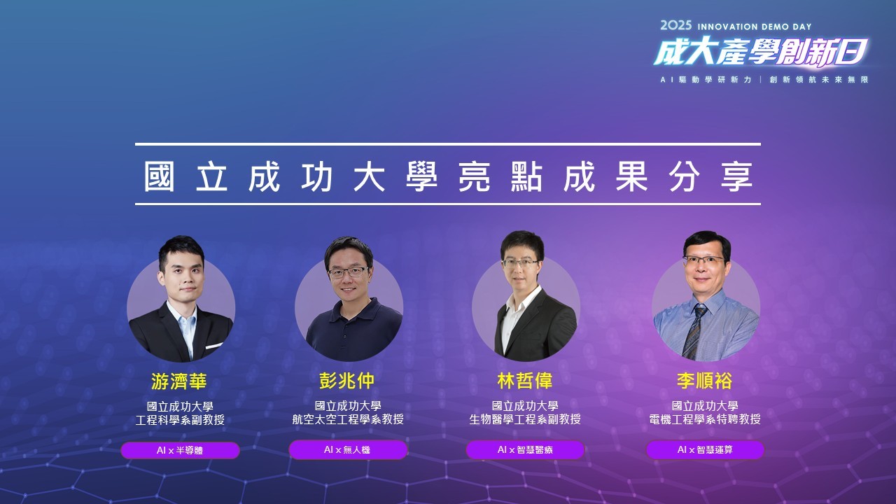 國立成功大學持續深化產學合作動能,2025「成大產學創新日」今年以「AI導入與智慧轉型」為主軸,聚焦製造、醫療及跨域應用三大領域,展現校內研發成果的高技術含量與產業落地價值,體現學研創新的實質影響力。本次活動除延續往年廣受好評的產學研論壇、成果展示與創業團隊競賽外,更串聯校內外研發能量與產業需求,展現成功大學從研發推動者蛻變為引領產業智慧轉型與永續發展的關鍵推手。